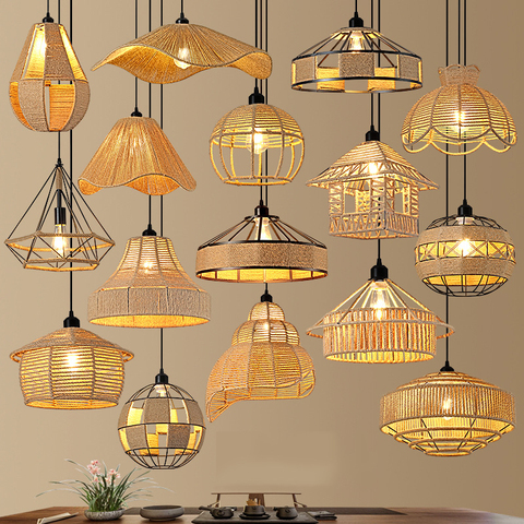 田舎のレトロな麻ロープディナーシャンデリア手作りラタンペンダントライト籐ランプジュートランプ用